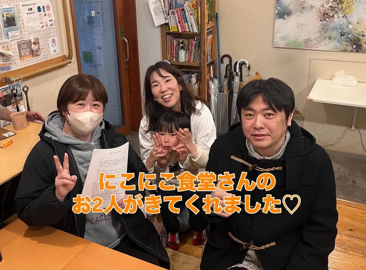 この日は、にこにこ食堂のお2人が来てくださり、こども食堂について意見交換。大森さん、あきなさん、ありがとうございました‼︎